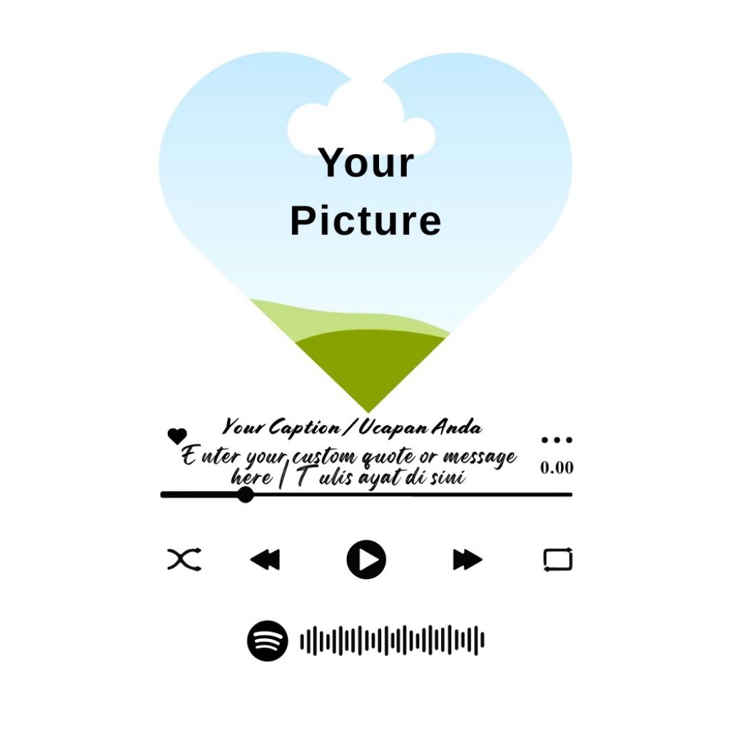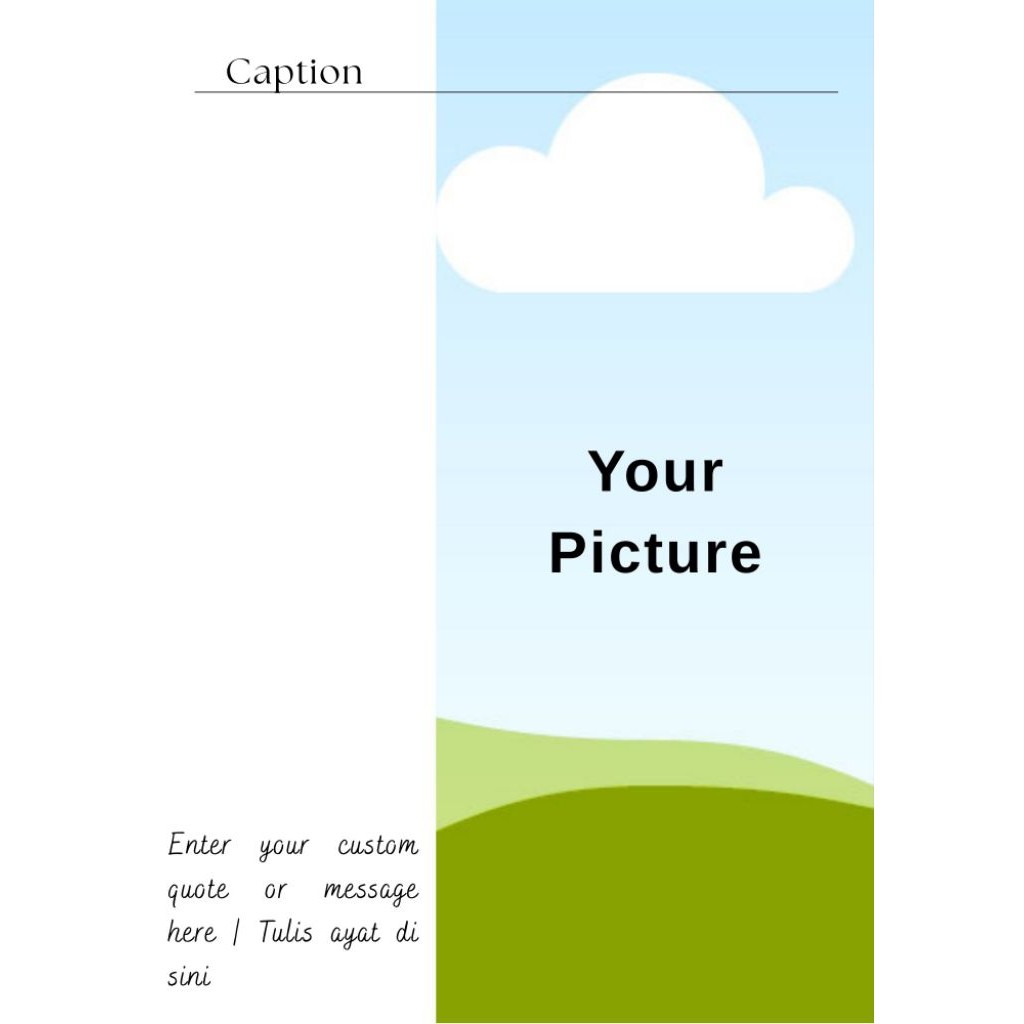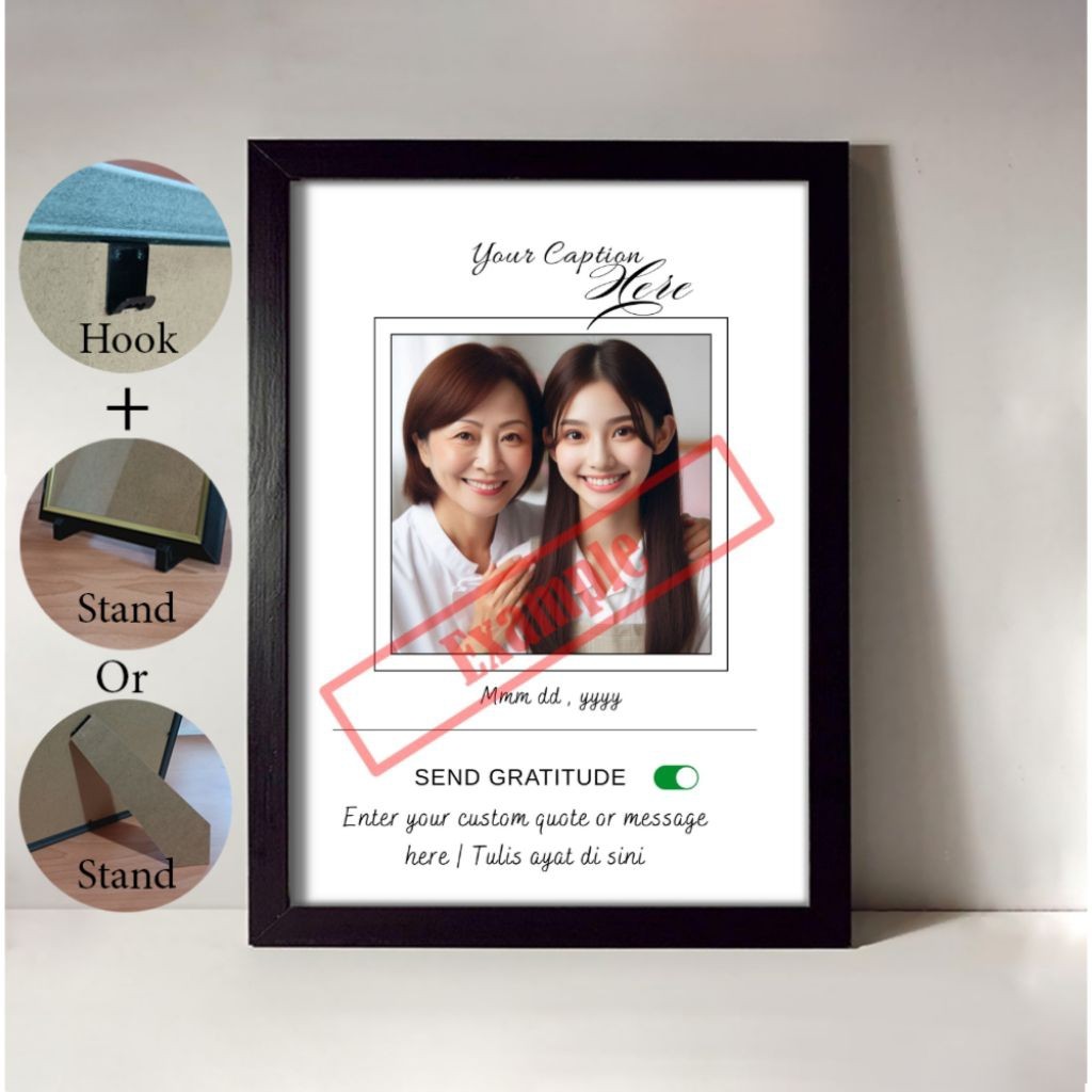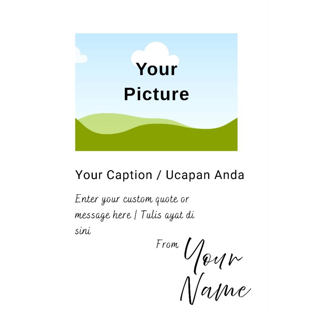 Anda boleh customize gambar dan nama anda pada frame ini. Design template adalah tetap.